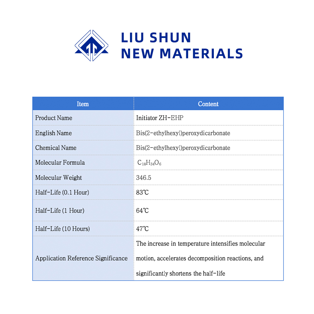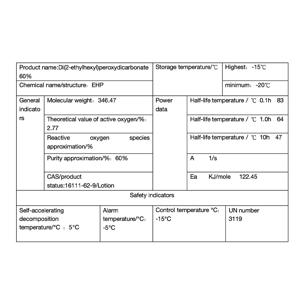 EHP is a low-temperature initiator of ethylene polymerization, commonly used in the tubular process, the use temperature of 130-160 ℃, can be used with a variety of initiators to form a compound initiator system.