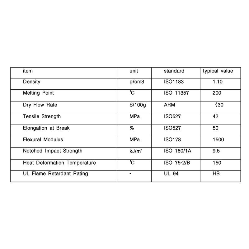 0.45 MPa, Heat Deformation Temperature | ℃ | ISO 75-2/B | 150 |