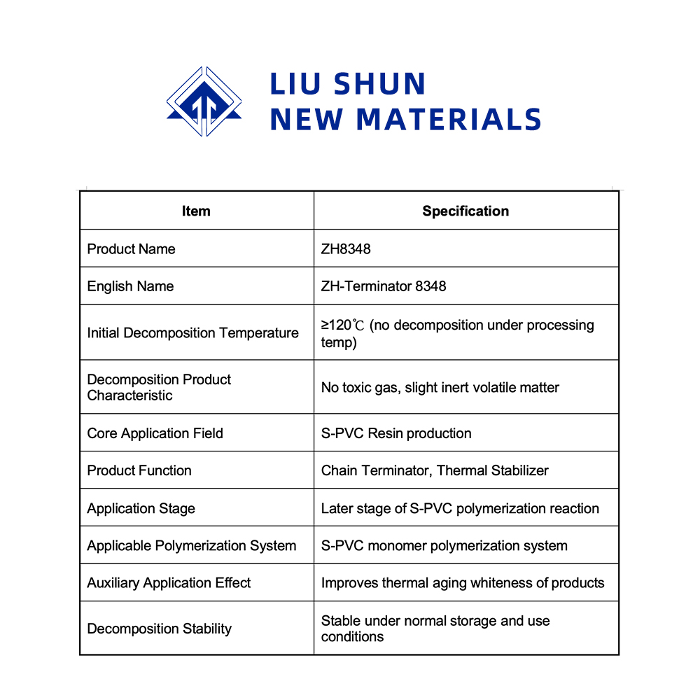 This product has excellent performance. It has good thermal stability and processing stability for S-PVC resin, and has a good protective effect on its thermal oxidation degradation. The use of this product in the later stage of S-PVC polymerization reaction can improve the thermal aging whiteness of S-PVC resin.