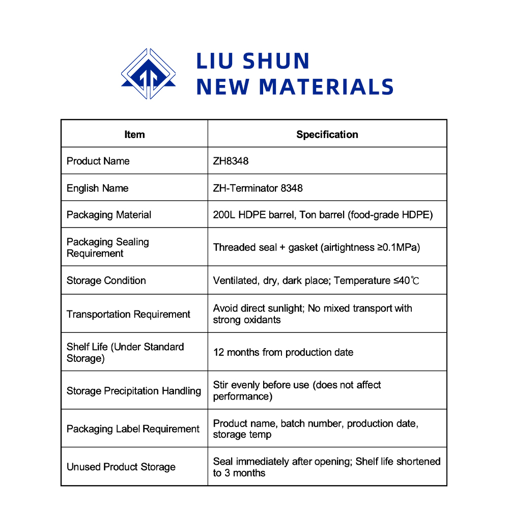 This product can be packaged in 200L HDPE barrels or ton barrels. Storage temperature ≤ 40 ℃, shelf life 12 months(A small amount of clear liquid may precipitate at the top of the product during long-term storage, which is a normal phenomenon and does not affect the use effect. Simply stir the product evenly before use).