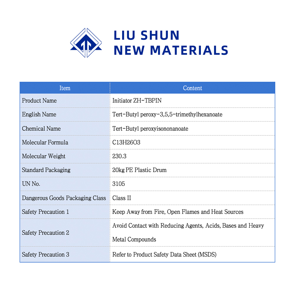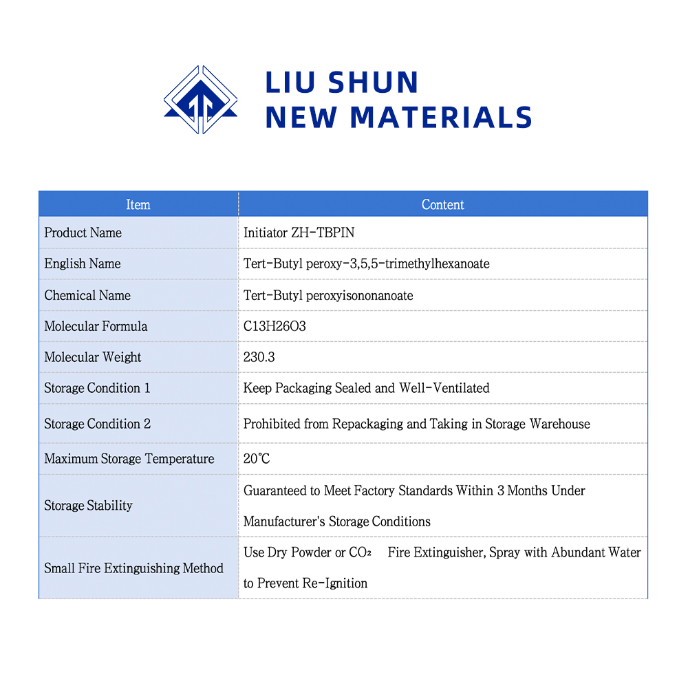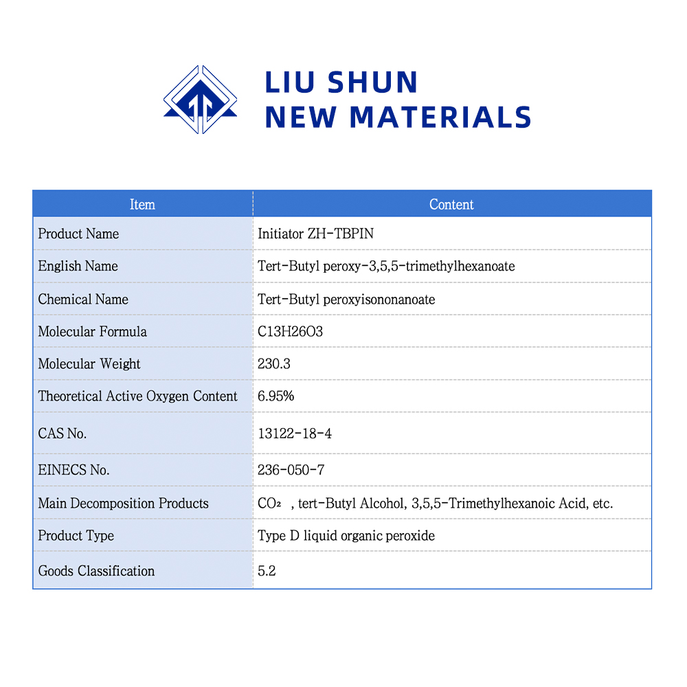 TBPIN is the curing agent of choice for UP resin hot molding process (SMC, BMC, ZMC, etc.), the temperature range of 120-170 ℃, the products are well tolerated, safe and environmentally friendly.
