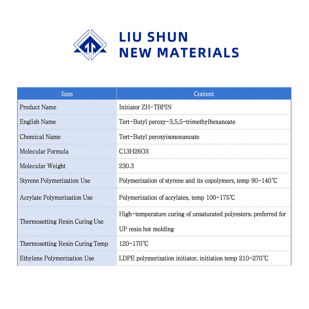 TBPIN can be used in the polymerization reaction of styrene and styrene copolymer, the polymerization reaction temperature range is 90-140℃.